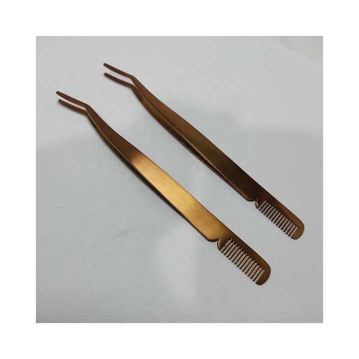 ที่คีบต่อขนตาสแตนเลส 10 มม. ป้องกันแม่เหล็ก พร้อมหวีจัดแต่งขนตา ปลายเรียบ สีโรสโกลด์