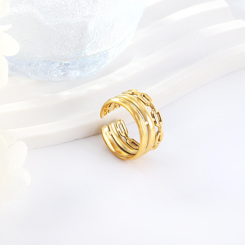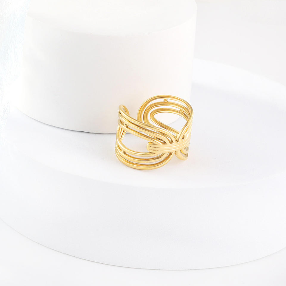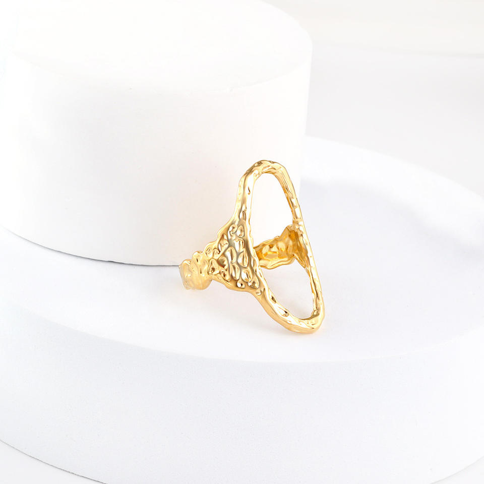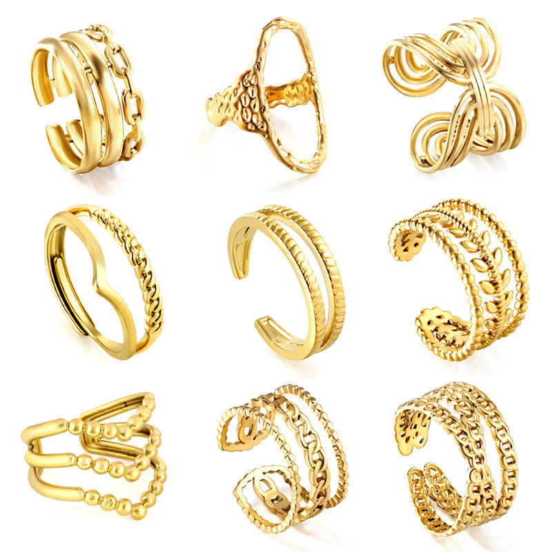 แหวนสแตนเลสสตีลชุบทอง 18K ปรับขนาดได้ ดีไซน์เรขาคณิตแบบไม่สมมาตร เครื่องประดับแฟชั่นสำหรับทุกเพศ เหมาะเป็นของขวัญ