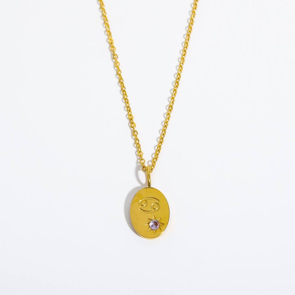 สร้อยคอเหล็กไทเทเนียม12ราศีจี้เพทายตัวอักษร26 K ทำจากสเตนเลสสตีลสร้อยคอชุบทอง18K สำหรับผู้หญิง