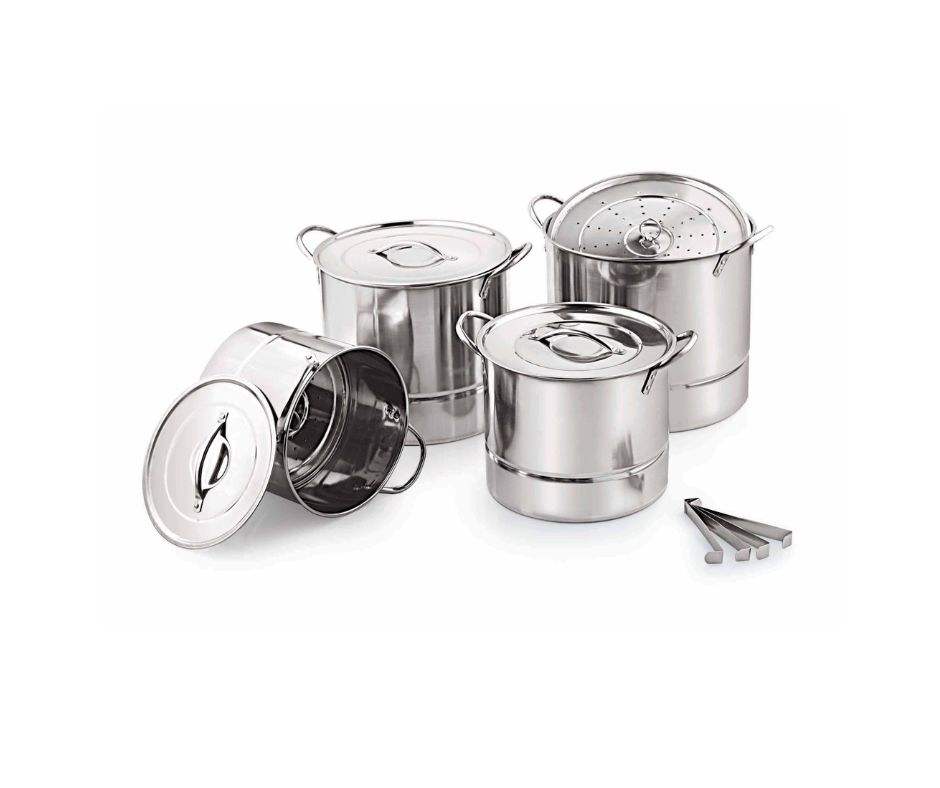 ชุดหม้อสแตนเลส 3 ชั้น ขัดเงาแบบกระจก เป็นมิตรกับสิ่งแวดล้อม ความจุขนาดใหญ่ พร้อมฝาปิดและตะกร้าสำหรับนึ่ง