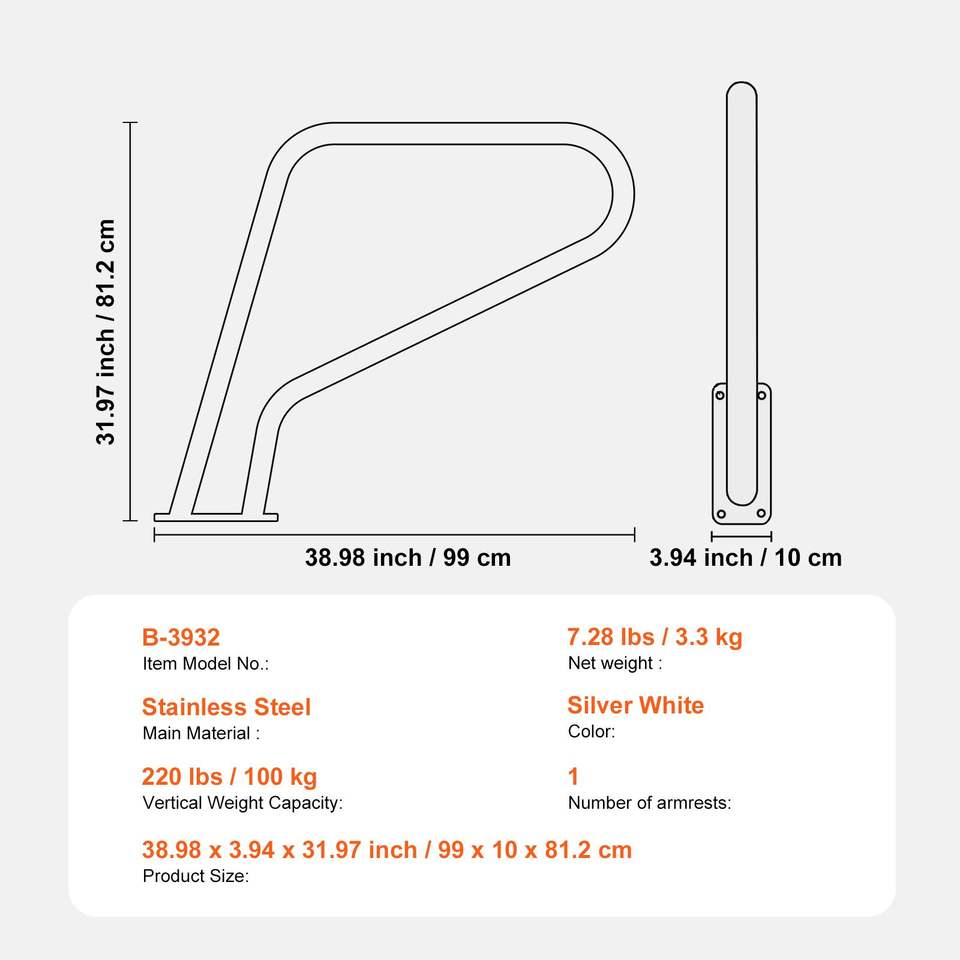 ราวจับสระว่ายน้ำสแตนเลสขนาด 39 x 32 นิ้ว พร้อมแผ่นฐาน สำหรับสระว่ายน้ำในร่ม/กลางแจ้ง อุปกรณ์และอุปกรณ์เสริมสำหรับสระว่ายน้ำ
