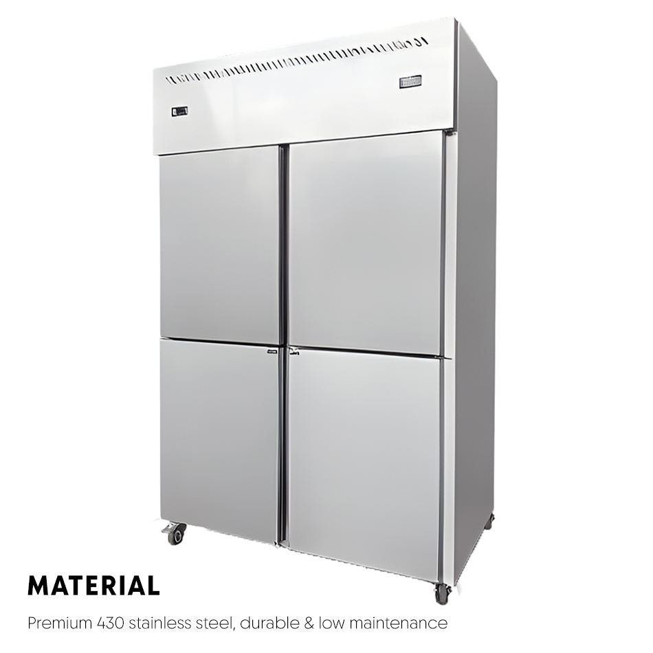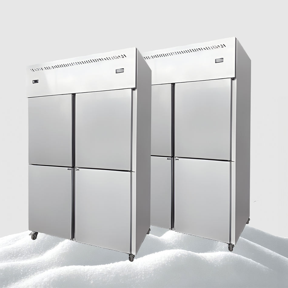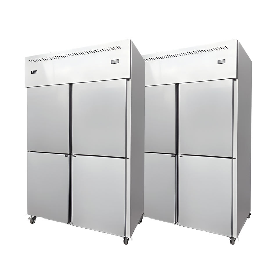 ตู้แช่แข็งเชิงพาณิชย์แบบ4ประตูทำจากสแตนเลสสตีลดีไซน์ตั้งตรงสำหรับห้องโถงจัดเลี้ยงอาหาร