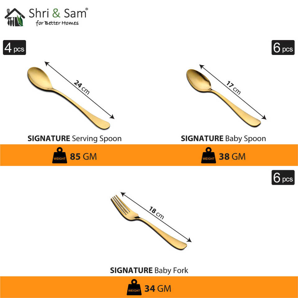 ชุดอาหารเย็นสแตนเลส64ชิ้น (6คน) เคลือบทอง PVD และลายเซ็นเลเซอร์เงาชุดอาหารเย็น