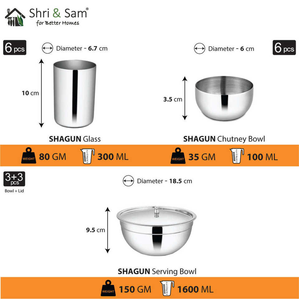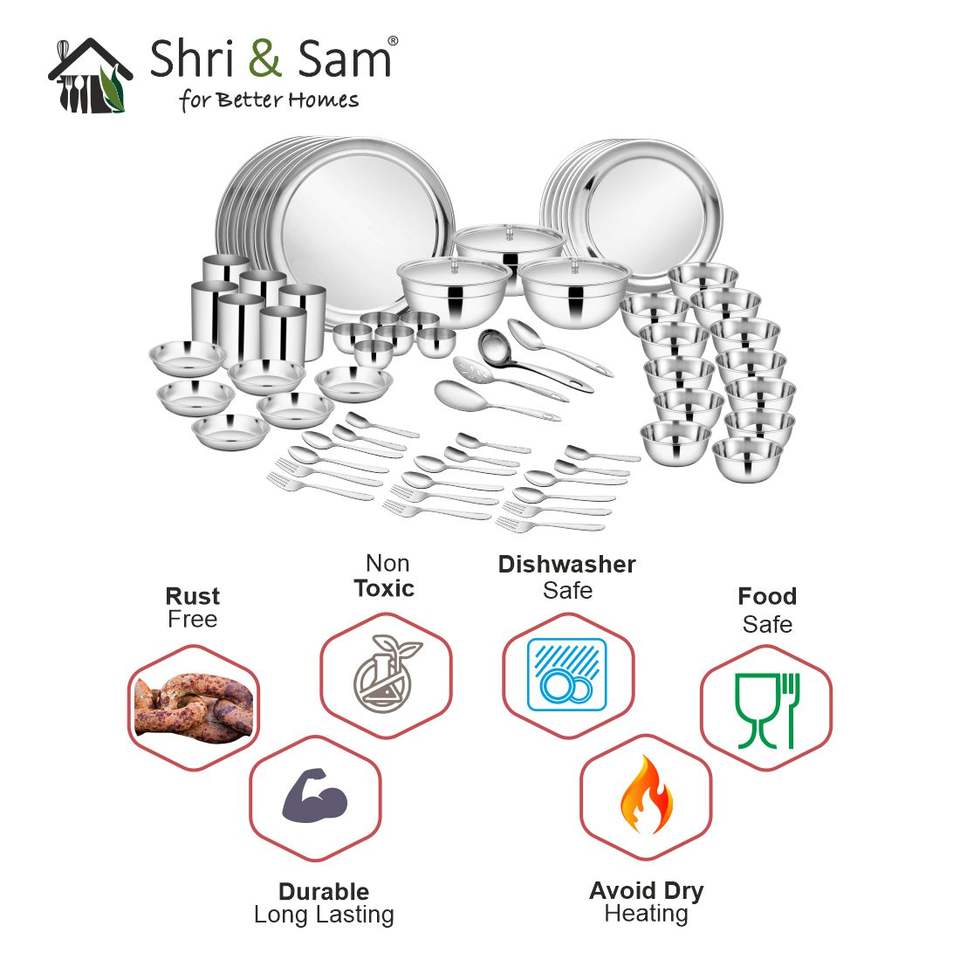 ชุดอาหารเย็นสแตนเลส68ชิ้นสำหรับ6คน shagun ชุดถ้วยชามพรีเมี่ยม