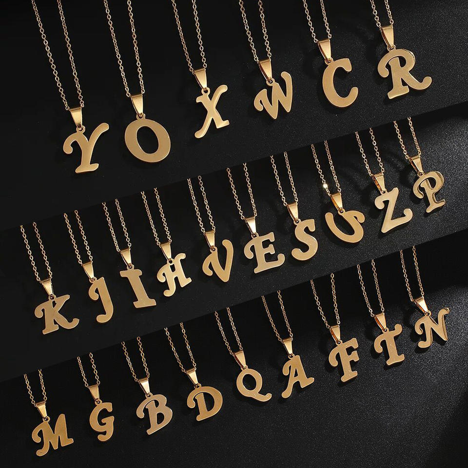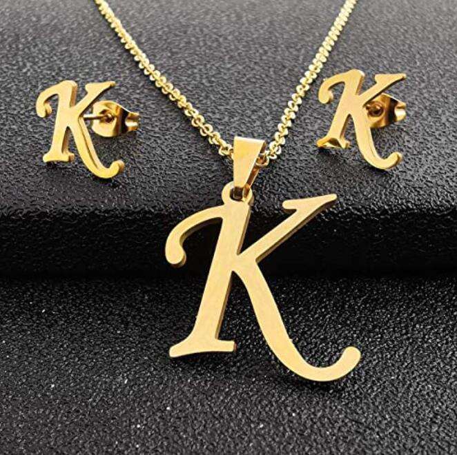 ชุดเครื่องประดับสร้อยคอและต่างหูสแตนเลสสตีล ตัวอักษร A-Z ชุบทอง จี้ตัวอักษรย่อ ชื่อ สำหรับผู้หญิงและเด็กผู้หญิง
