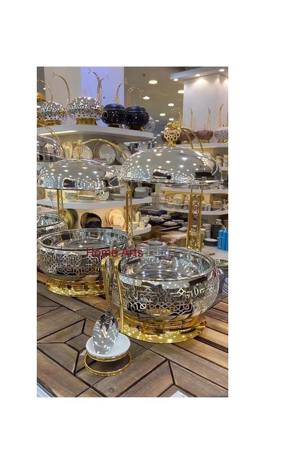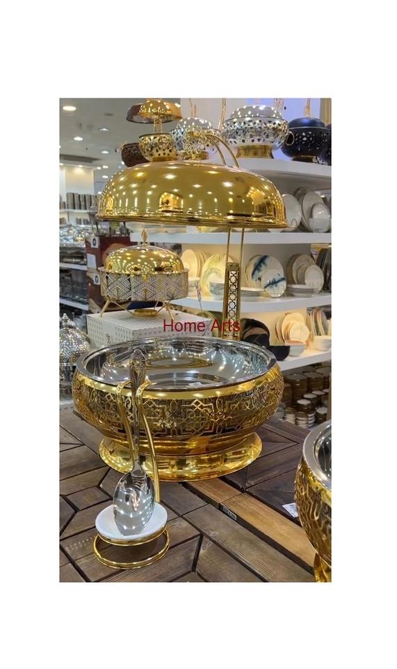 จานร้อนอาหารทำจากสแตนเลสและทองเหลืองพร้อมเครื่องอุ่นอาหารสำหรับการใช้งานในโรงแรม