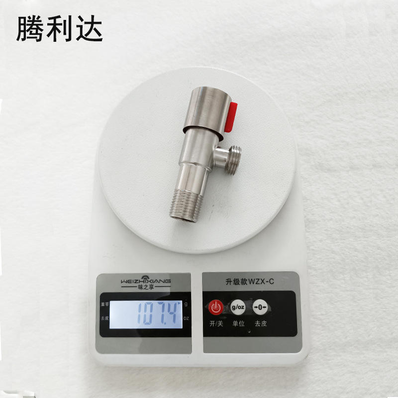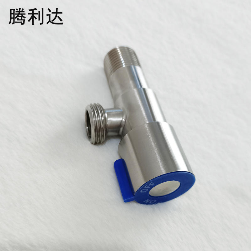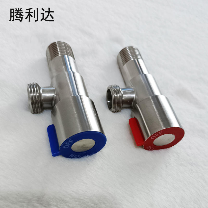 วาล์วมุมสแตนเลส 304 พร้อมแกนทองแดงสำหรับน้ำร้อนน้ำเย็นหนึ่งทางเข้าสองทางออกเกลียวตัวผู้