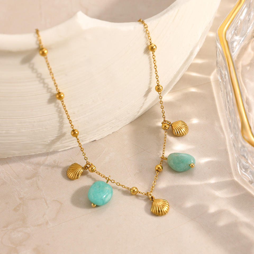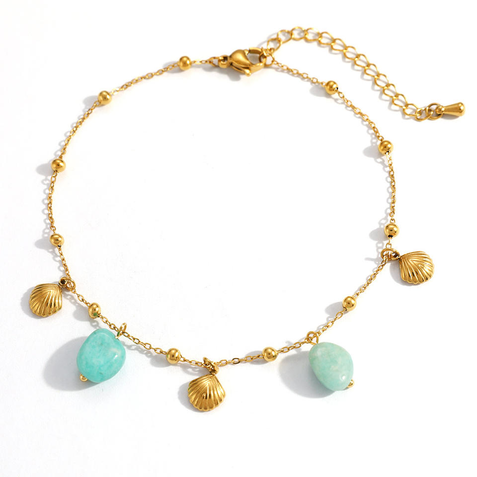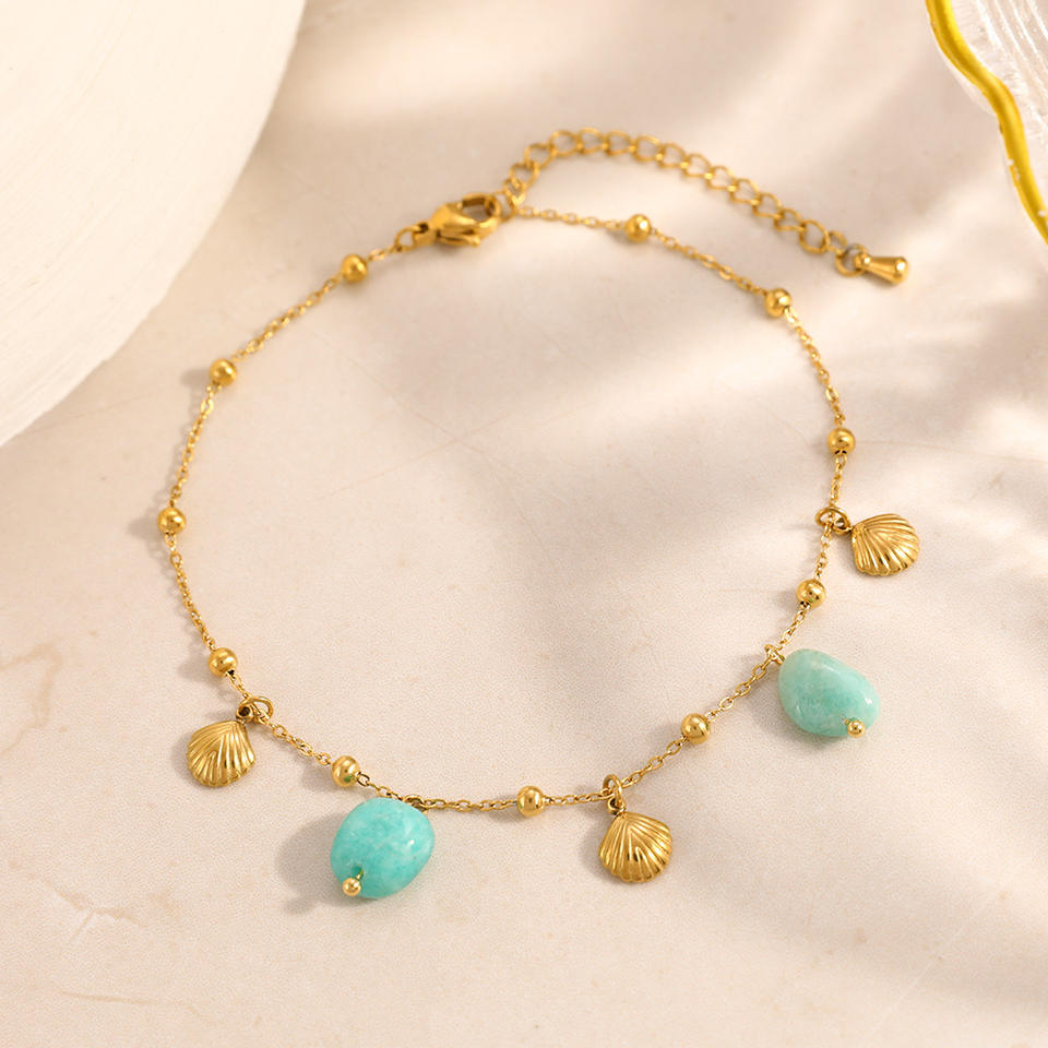 สร้อยข้อเท้าสแตนเลสพร้อมจี้เปลือกหอยชุบทอง 18k เครื่องประดับเท้าผู้หญิงธีมมหาสมุทรโซ่ลูกปัด