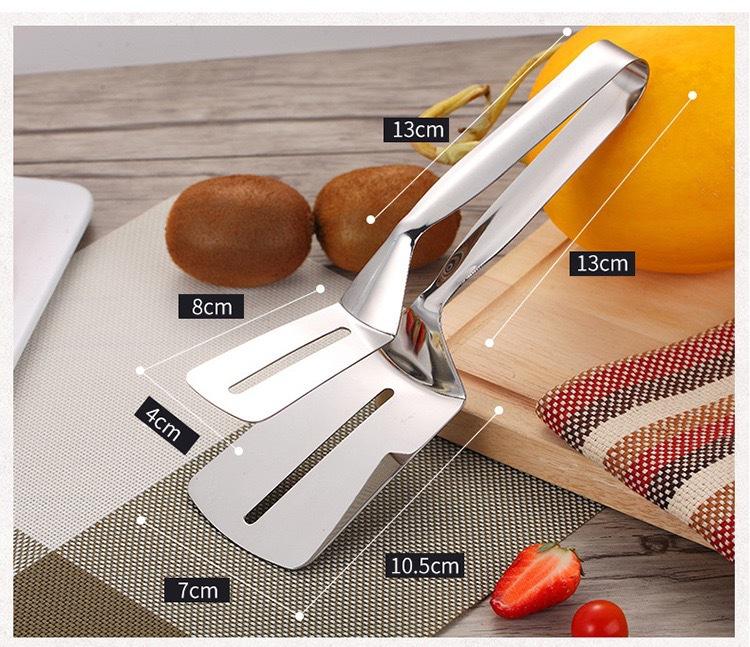 ที่คีบอาหารในครัวทำจากโลหะกันร้อนทำจากสแตนเลสใช้ในครัวเรือนที่คีบปลาทอดพร้อมเครื่องมือติด