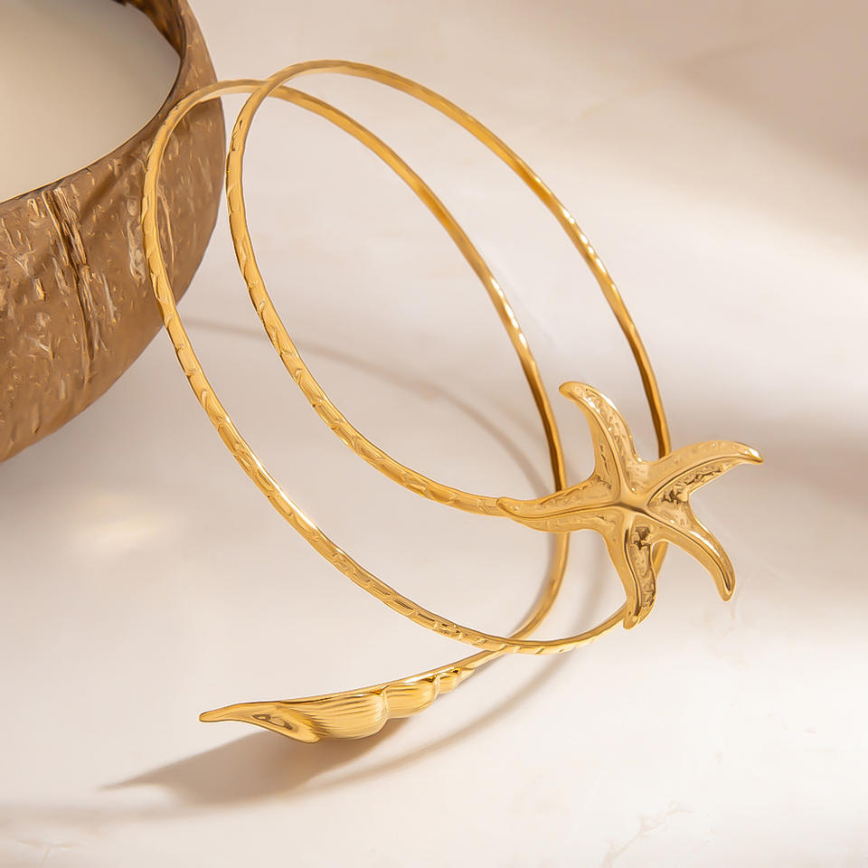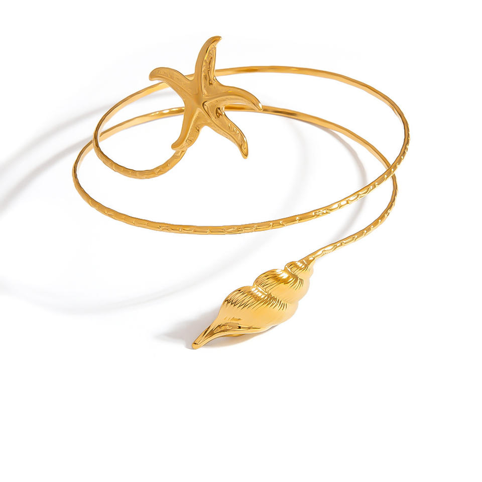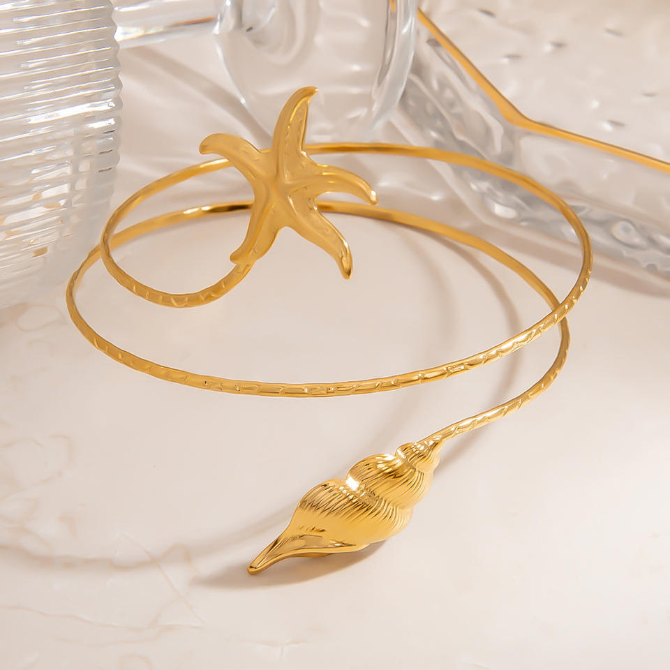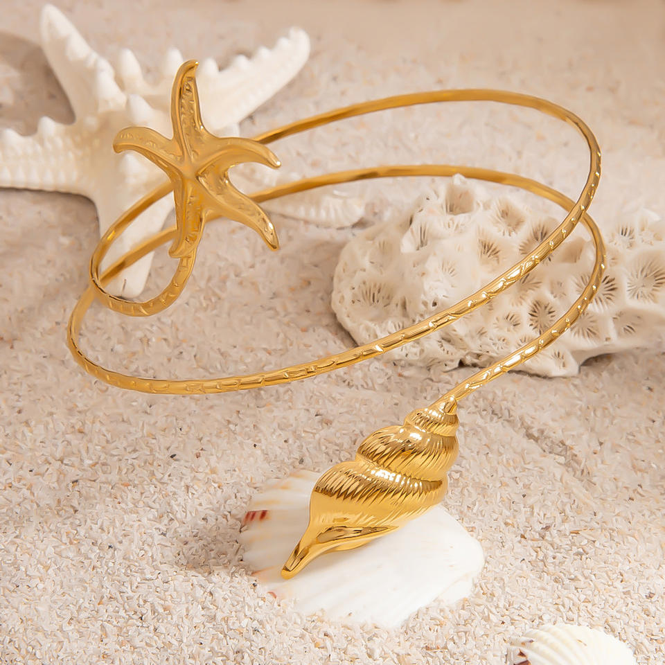 สร้อยข้อมือสแตนเลสสตีล ดีไซน์ปลาดาวและเปลือกหอย เครื่องประดับชายหาด แฟชั่นสำหรับผู้หญิง