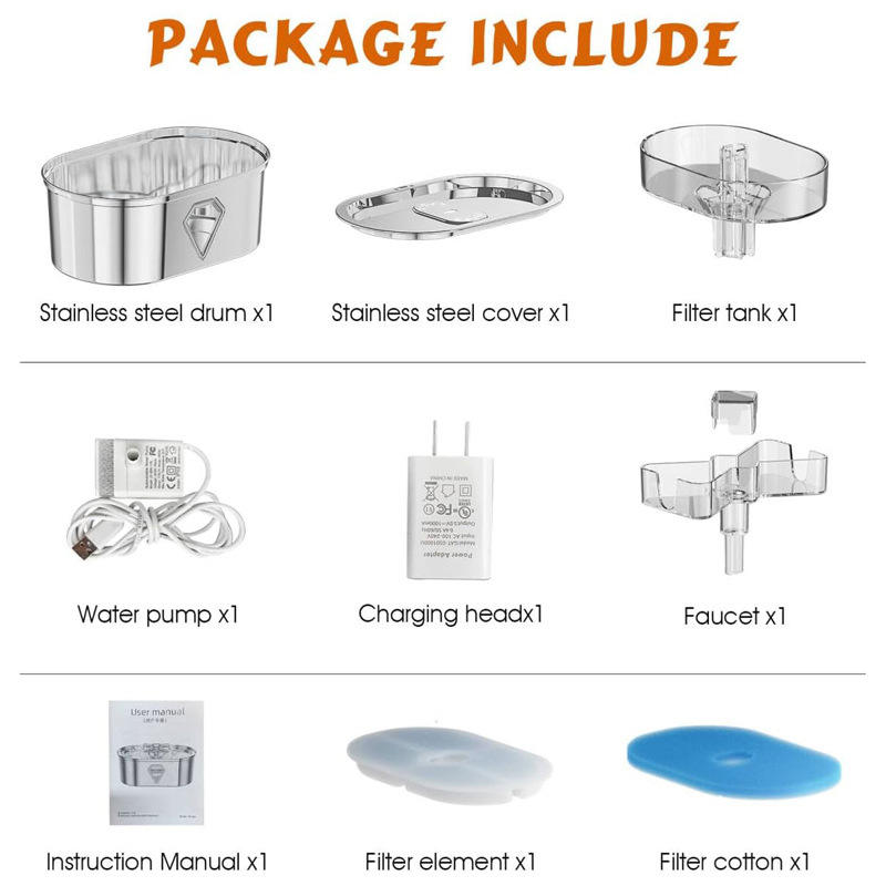 น้ำพุน้ำแมวอัตโนมัติสแตนเลส WF280 930 กรัม ถอดประกอบได้สำหรับสุนัขและแมว