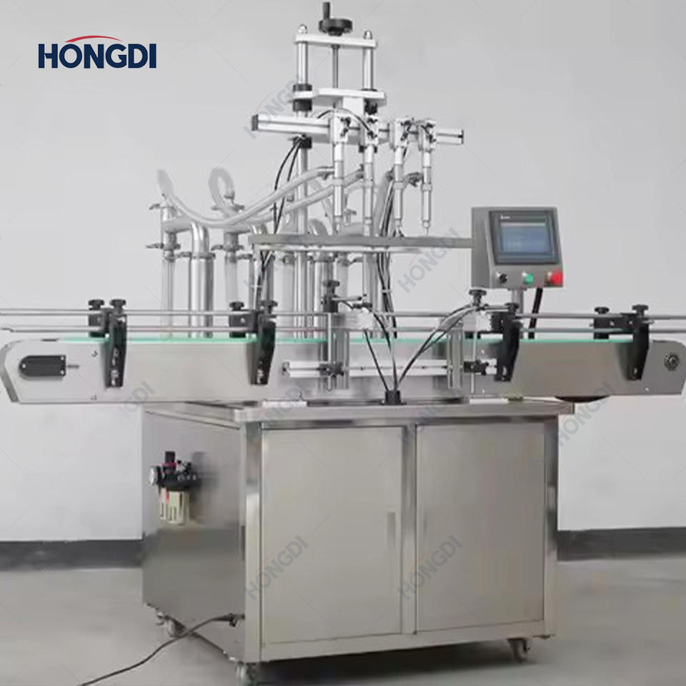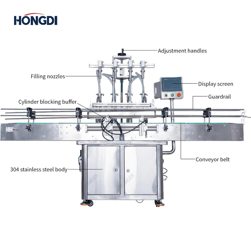 เครื่องบรรจุของเหลวสี่หัวแบบอัตโนมัติสแตนเลสสำหรับการผลิตผลิตภัณฑ์ทำความสะอาดเครื่องดื่มน้ำผึ้ง