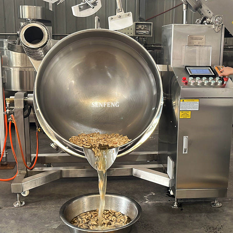 เครื่องกวนอาหารด้วยแก๊สอัตโนมัติทำจากสแตนเลสอุปกรณ์ครัวเครื่องผสมอาหารทอดเนื้อหมูน้ำมันพริก