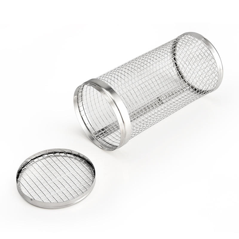 ตะกร้าย่างบาร์บีคิวสแตนเลส 20.3X9.5X9.5 กระเช้ารมควันทรงกระบอกแบบพกพาพร้อมฝาปิดสำหรับการย่างกลางแจ้ง