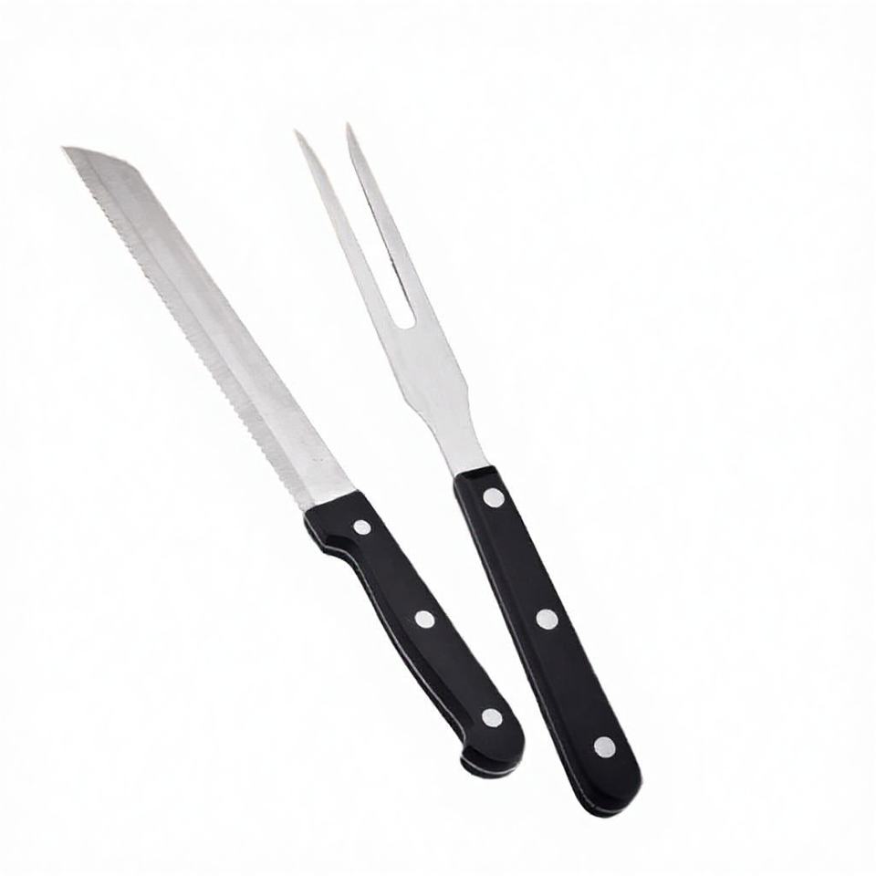 ชุดมีดส้อมบาร์บีคิวสแตนเลส 2 ชิ้น ใช้ได้ทั้งมือซ้ายและขวา เคลือบ PVD สำหรับตัดเนื้อ ด้ามจับ POM คมกริบ ฟันเลื่อยเต็มใบ หนาพิเศษ