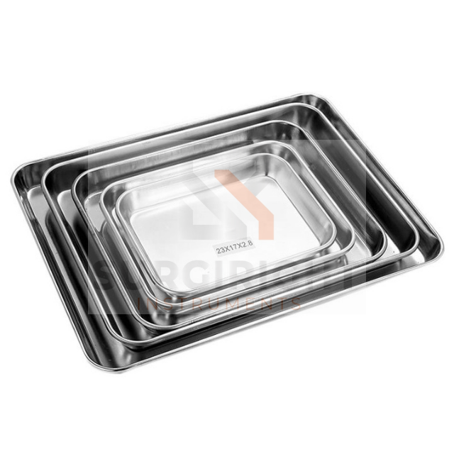 ถาดอบขนมแบบใช้มือทำจากสแตนเลส มีหลายขนาดสำหรับใช้ในโรงพยาบาล ได้รับการรับรองมาตรฐาน CE โดย SurgiRight