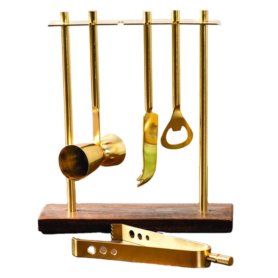 ชุดอุปกรณ์บาร์สแตนเลส5ชิ้นชุดบาร์เทนเดอร์สีทองชุดเครื่องมือบาร์รวมถึงที่หนีบน้ำแข็งฯลฯ