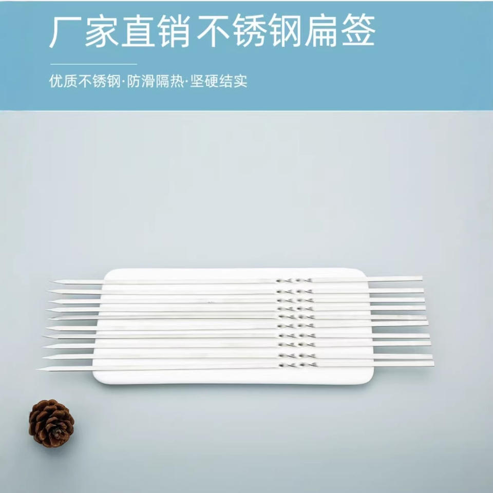 เหล็กเสียบย่างบาร์บีคิวสแตนเลส ดีไซน์เกลียวแบน ทนความร้อน สำหรับย่าง อบ และทำอาหาร