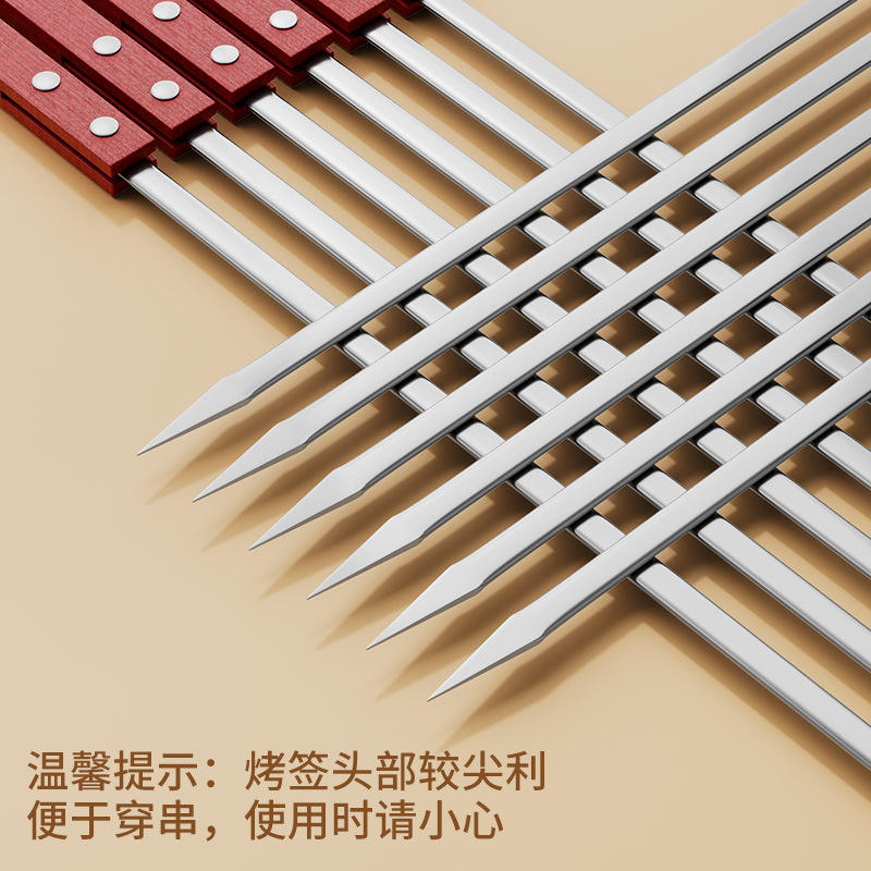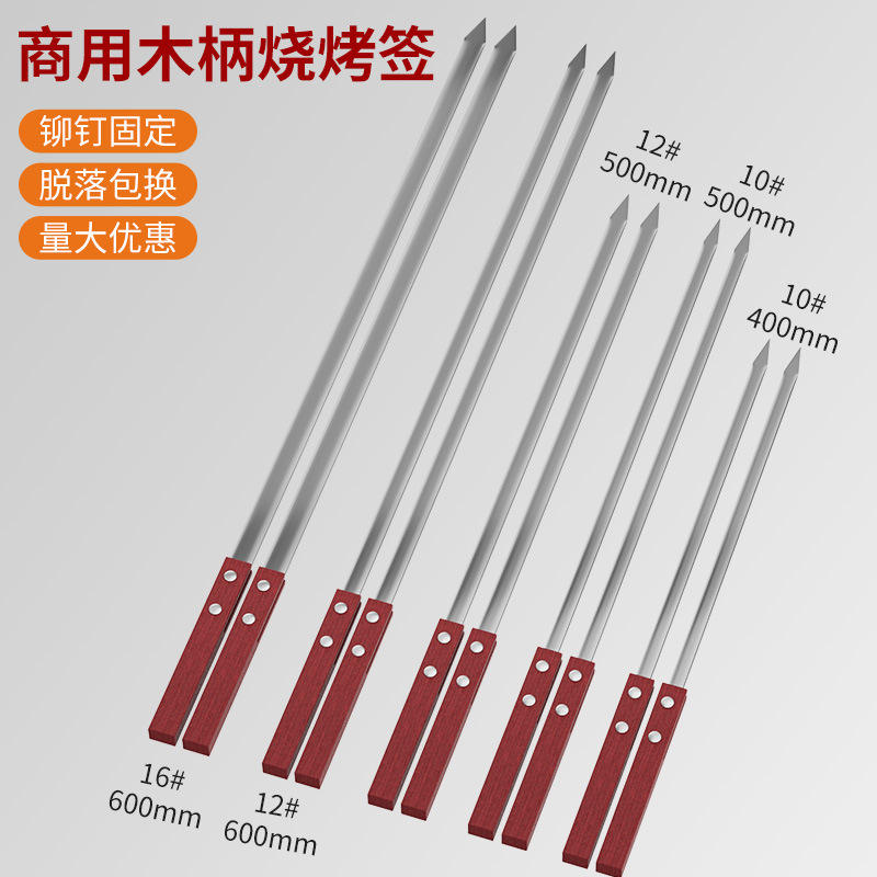 เหล็กเสียบย่างบาร์บีคิวสแตนเลสพร้อมด้ามไม้ ขนาด 40 50 60 ซม. แข็งแรงทนทาน สำหรับทำอาหาร อบ และย่าง