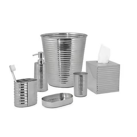 ชุดของขวัญห้องน้ำสแตนเลส กล่องใส่กระดาษทิชชู่ ที่จ่ายสบู่เหลว ที่วางแปรงสีฟัน ถังขยะ