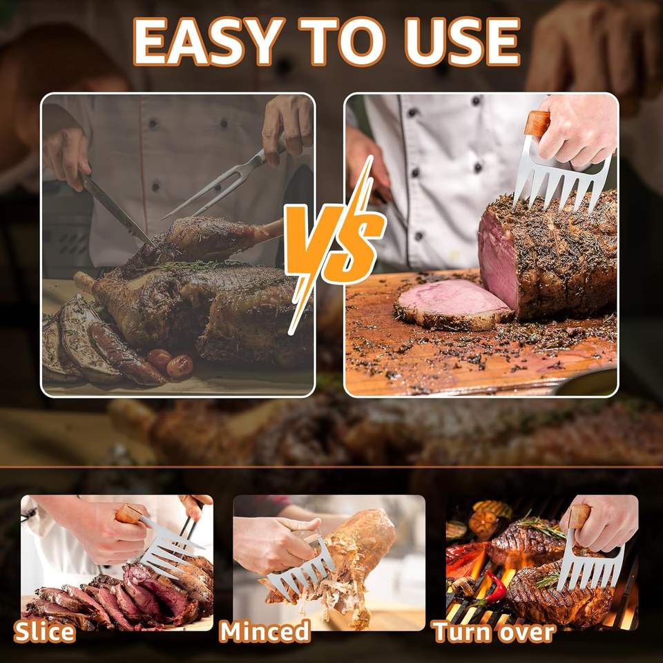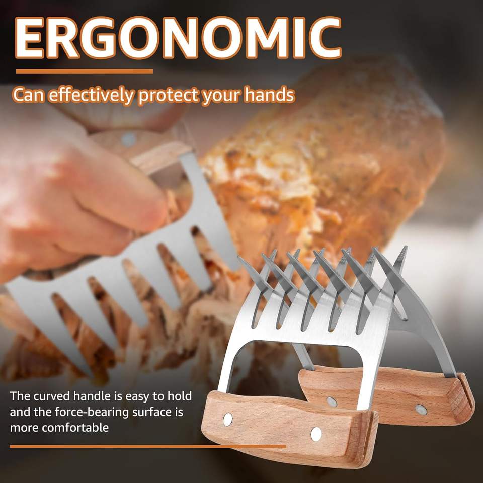 กรงเล็บสแตนเลสสำหรับฉีกเนื้อหมีพร้อมด้ามไม้ อุปกรณ์บาร์บีคิวสำหรับตั้งแคมป์กลางแจ้งและปิ้งย่าง