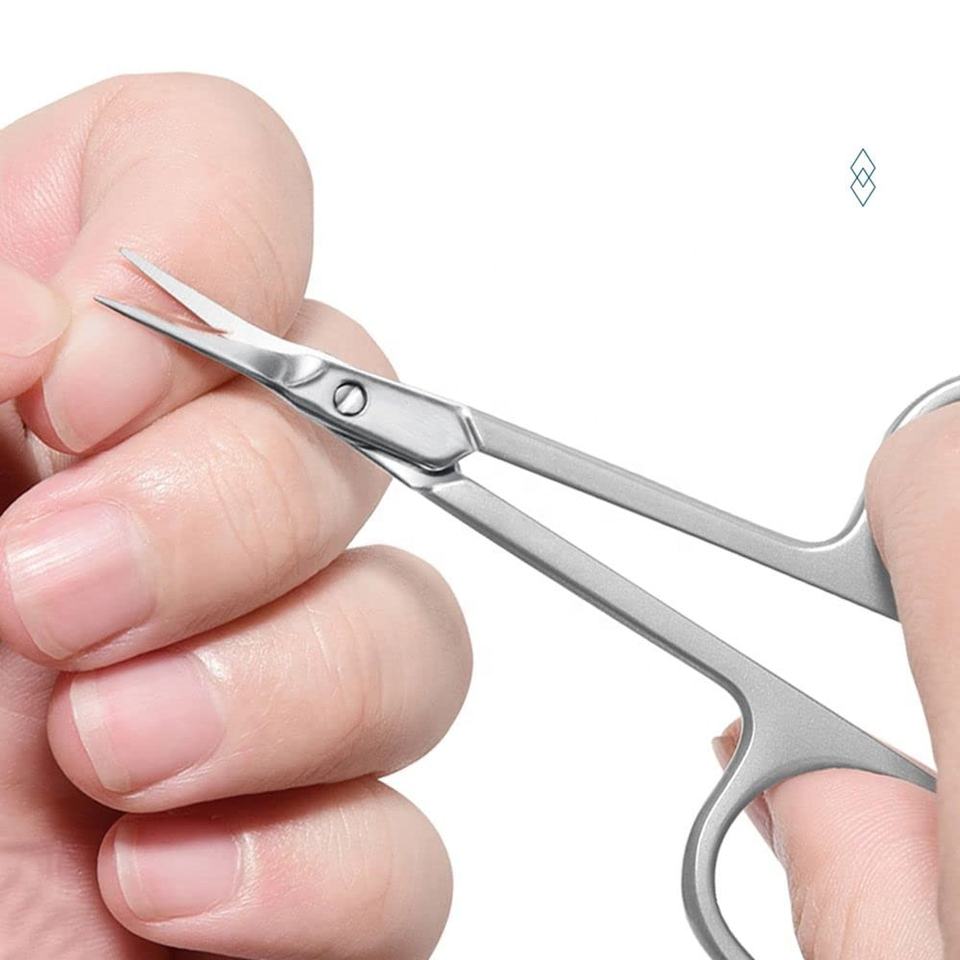 กรรไกรตัดขนจมูกโค้งมนสำหรับผู้หญิงที่เล็มหนวดสำหรับดูแลขนบนใบหน้าเครื่องมือเสริมความงามสแตนเลสสตีล