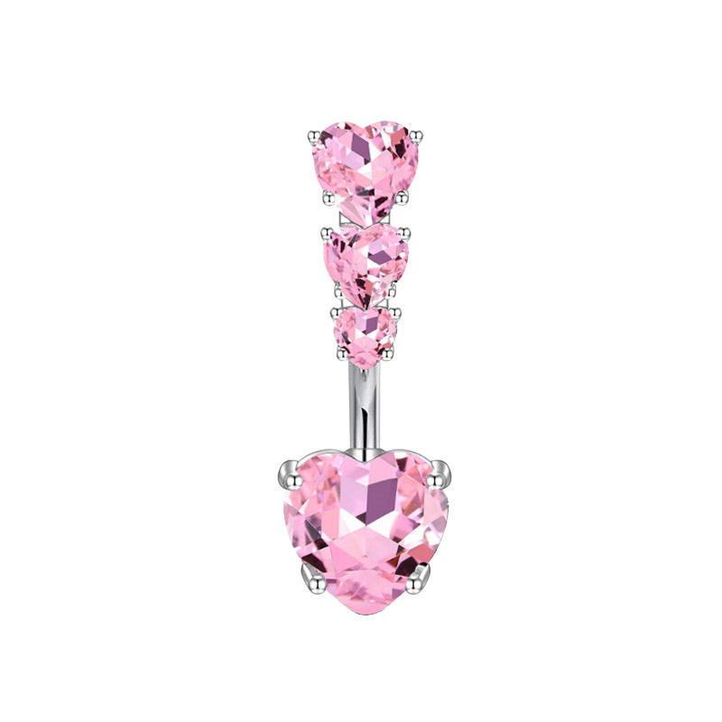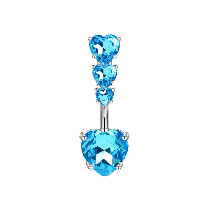 เครื่องประดับเจาะสะดือสแตนเลสสตีลรูปหัวใจสี่ดวงประดับเพชรหลากสีขนาด 14 เกจ แหวนเจาะสะดือเซ็กซี่ ของขวัญเครื่องประดับร่างกาย
