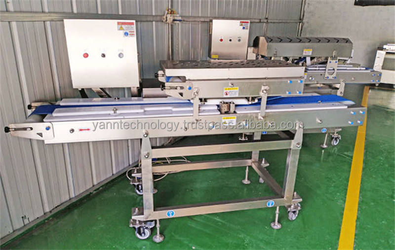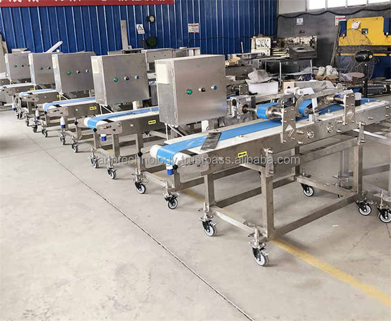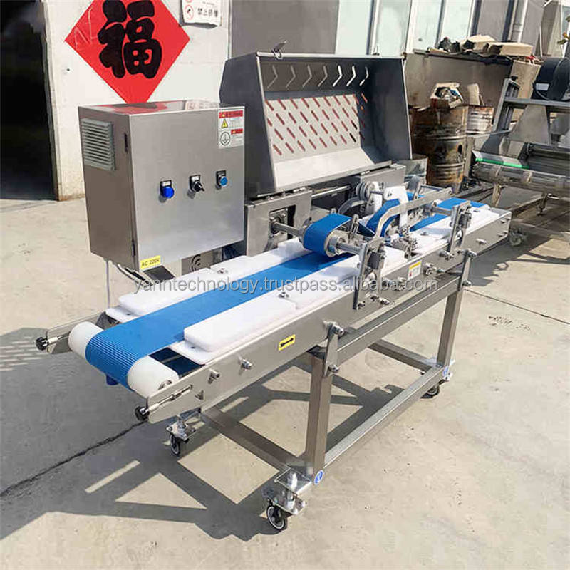 เครื่องหั่นสไลด์อกไก่แบบสายพานสเตนเลสสตีลเครื่องหั่นเนื้อเบคอนสเต็กแนวนอนอกไก่
