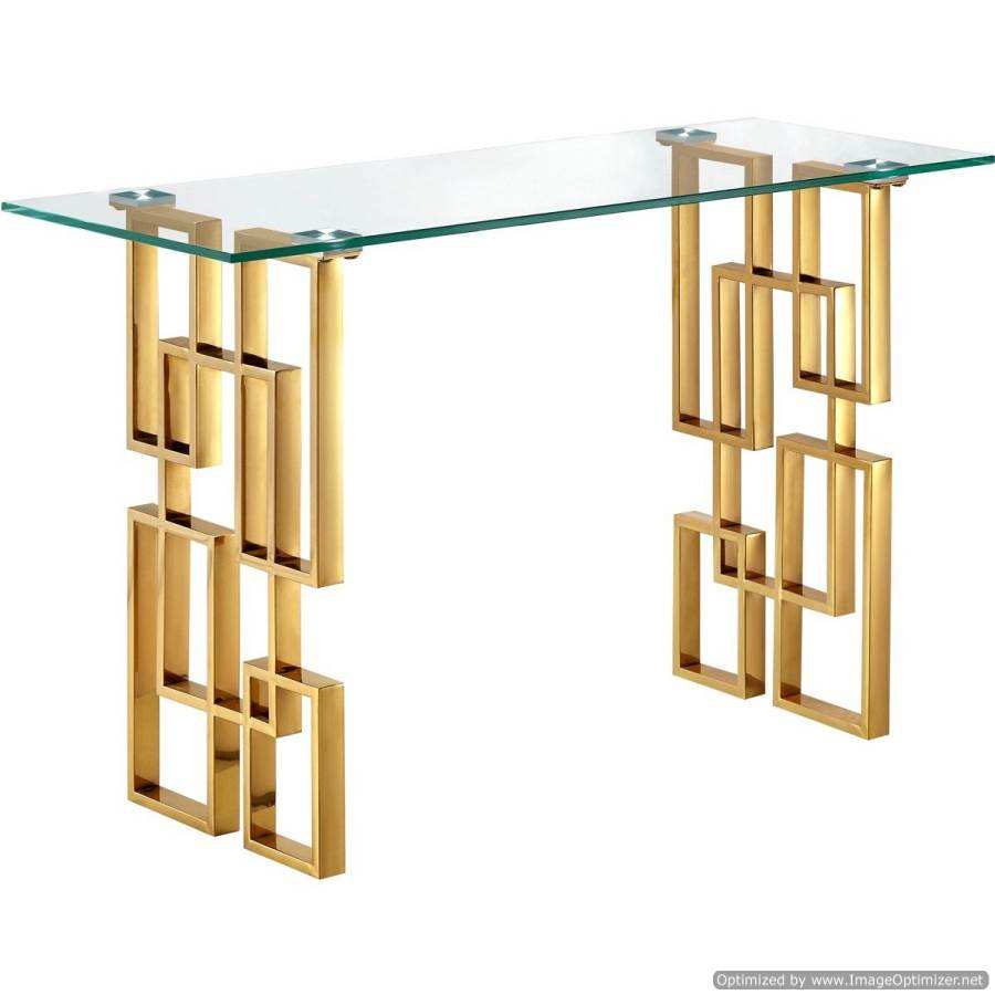 โต๊ะทำมือสีทองพร้อมกระจกโต๊ะด้านข้างและคอนโซลผนังดีไซน์หรูหราบล็อกสแตนเลส