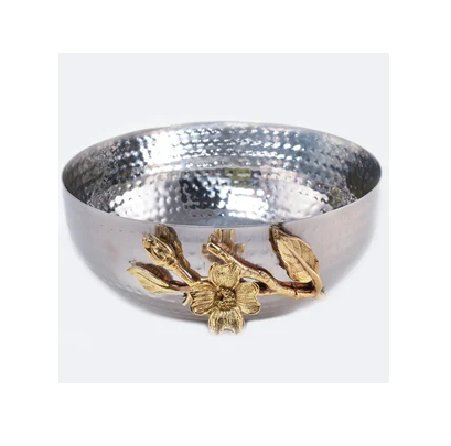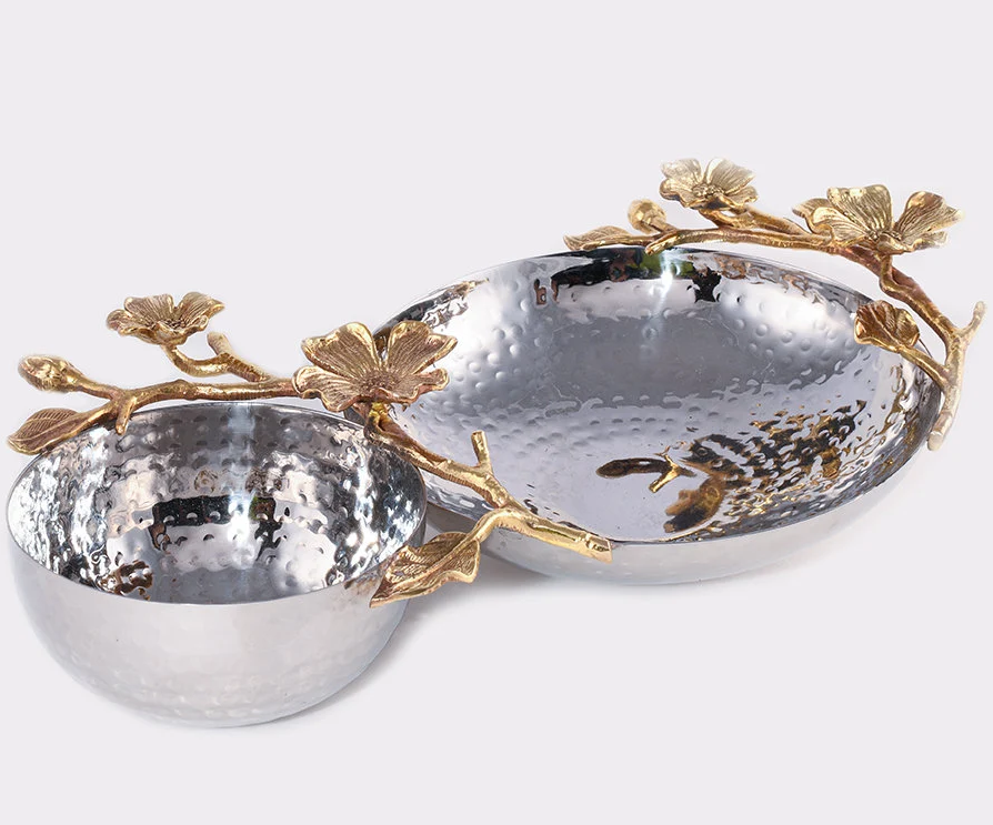 ชามสแตนเลสมีดีไซน์กิ่งไม้ทองเหลืองชามเสิร์ฟอาหาร