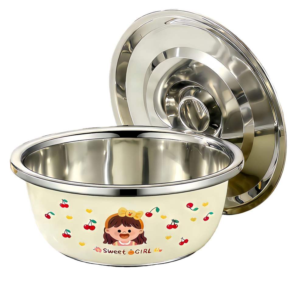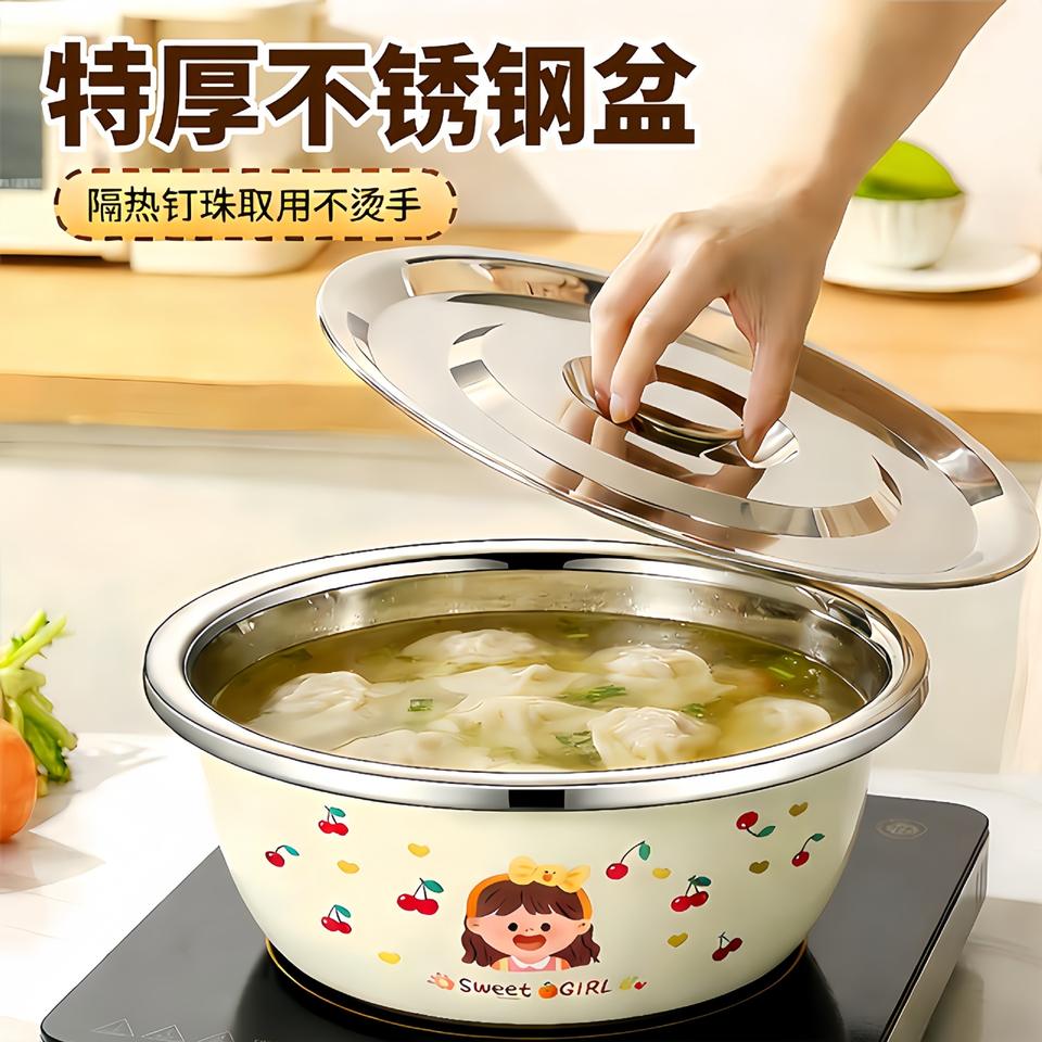 ชามสแตนเลสพร้อมฝาปิด เกรดอาหาร 304 สำหรับเก็บอาหารในครัว ซุป และเครื่องปรุงรส ใช้กับเครื่องล้างจานได้
