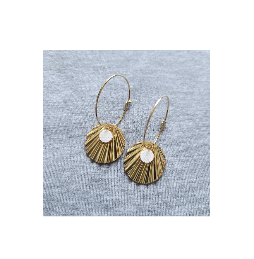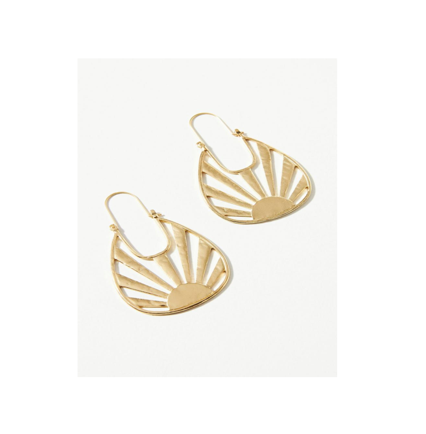 สแตนเลสทองเหลืองต่างหูผู้หญิงSparkly Gold PlatedจิตวิญญาณแสงแดดBeam Hoopต่างหูใบออกแบบชิ้น
