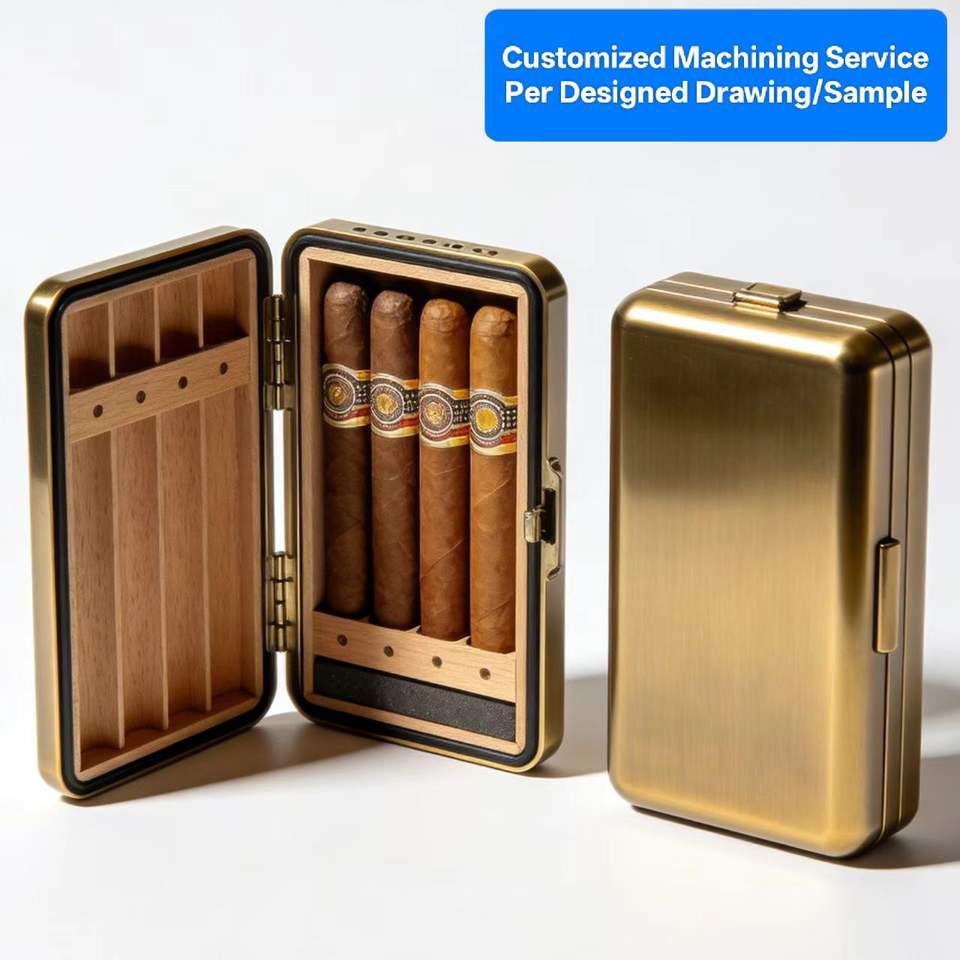 กล่องใส่ซิการ์แบบพกพา สแตนเลส ทองเหลืองเคลือบ PVD กล่องเก็บความชื้นอะลูมิเนียมอัลลอยด์ กล่องซิการ์ออกแบบเองด้วยเครื่อง CNC