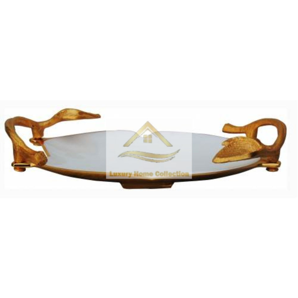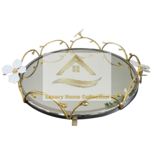 ถาดแก้วทองเหลืองทำจากสแตนเลสพร้อมขอบตกแต่งดอกไม้ถาดงานฝีมืออินเดียที่สวยงาม