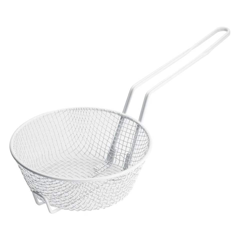 ตะกร้าทอดสเตนเลสสตีลสำหรับใช้ในครัวมืออาชีพ พร้อมฟังก์ชั่นกรองน้ำมันและช่วยเคลือบอาหารได้ง่าย
