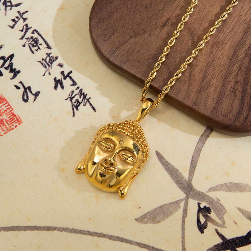 จี้พระพุทธรูปสแตนเลส พระพุทธรูปไทย สร้อยคอชุบทองสำหรับผู้ชาย ของขวัญ