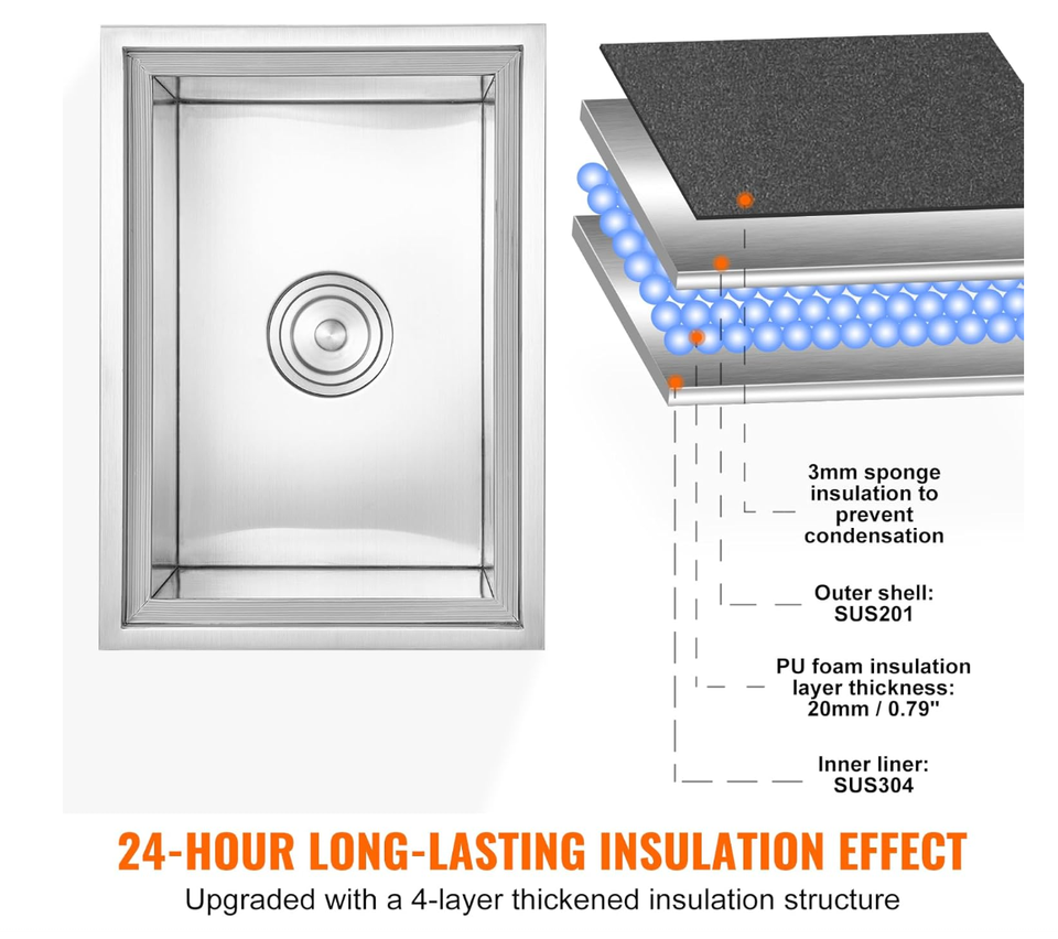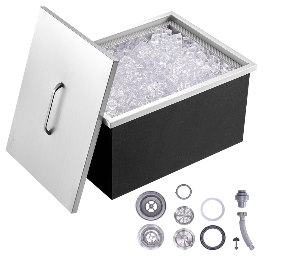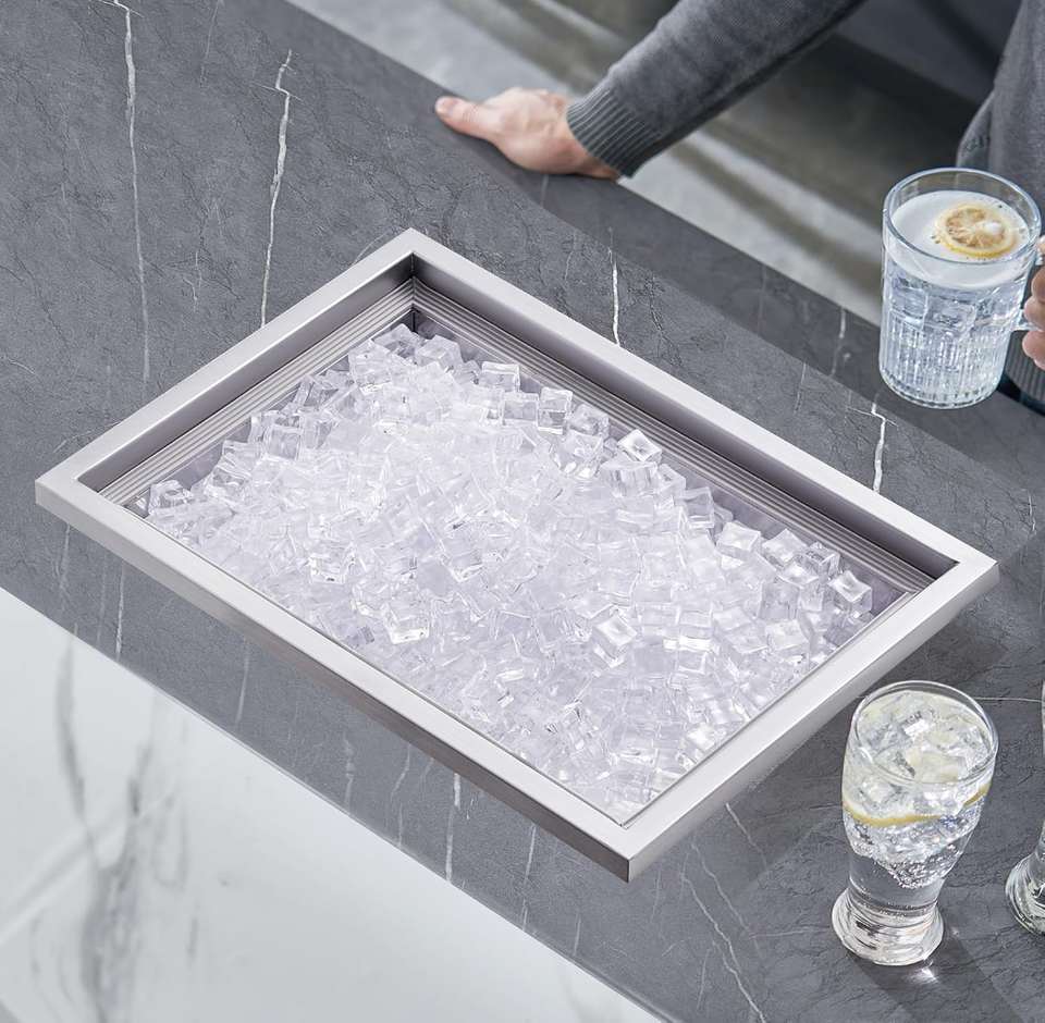 Stainless Steel Built-in Flip Cover Ice Bin with Drainage System & Handle | Commercial Bar Kitchen Ice Storage