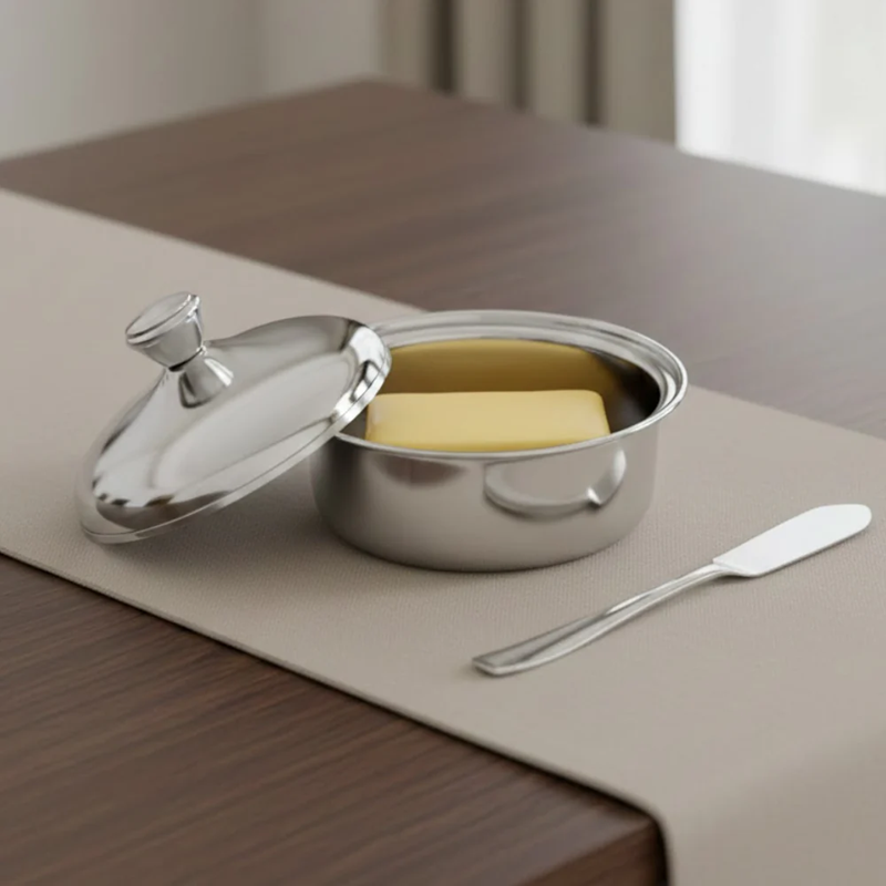 กล่องเนยสแตนเลสพร้อมฝาปิด ภาชนะเก็บชีส ผลิตภัณฑ์ที่ดีที่สุดสำหรับใช้บนโต๊ะอาหารเช้าที่บ้าน