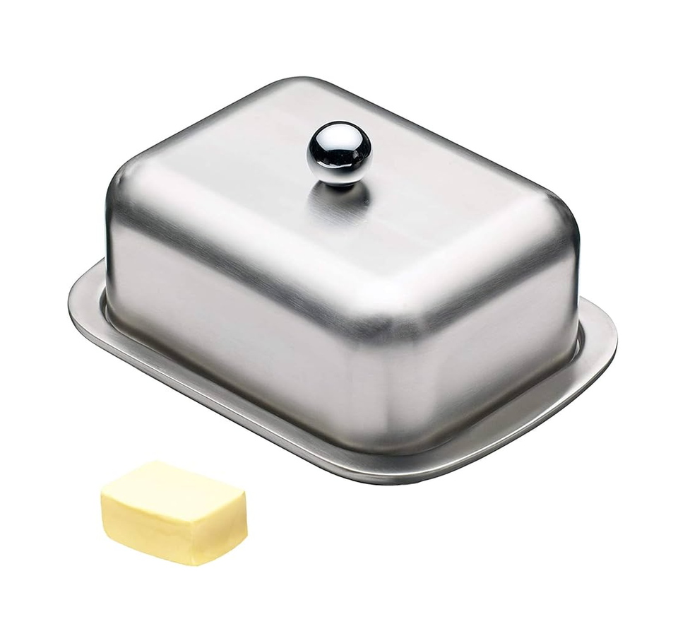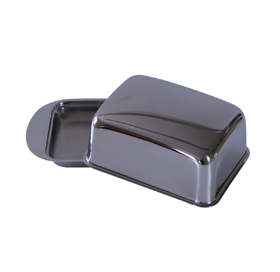 จานเนยสแตนเลสพร้อมฝาปิดอุปกรณ์ครัวแบบดั้งเดิมเครื่องล้างจานปลอดภัยตกแต่งบ้านร้านอาหารตามสั่ง