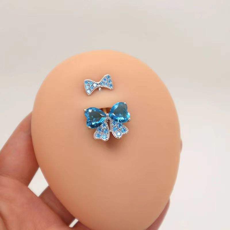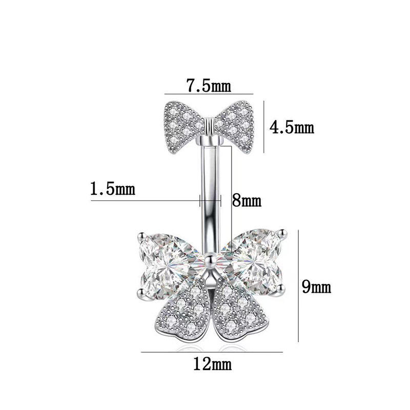 แหวนสะดือสแตนเลสทรงผีเสื้อ แหวนสะดือสีเงิน ลูกปัดหลากสีสำหรับผู้หญิง เครื่องประดับเจาะร่างกายสำหรับงานปาร์ตี้