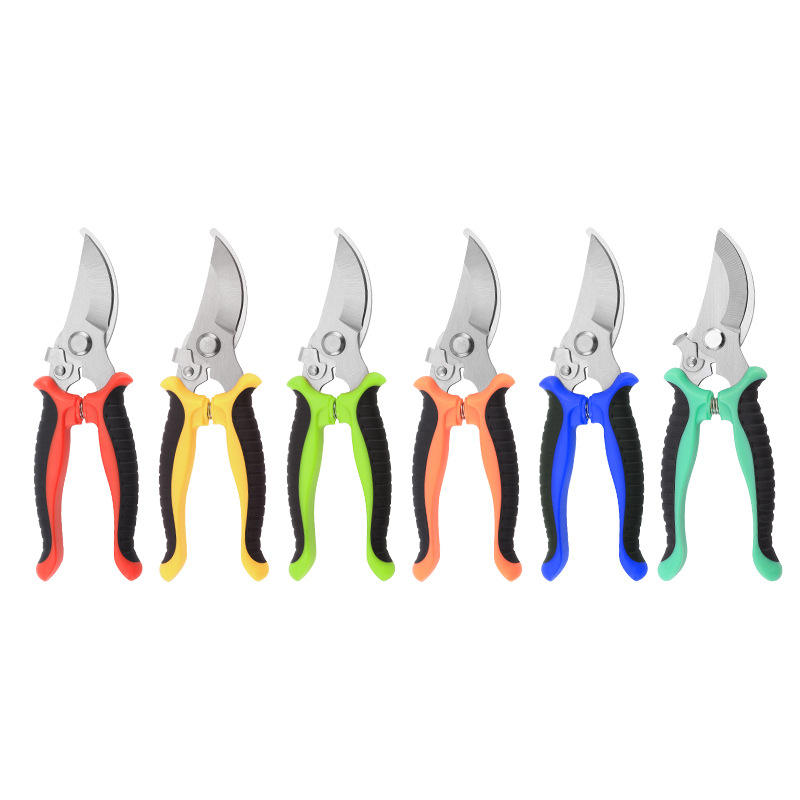 กรรไกรตัดแต่งกิ่งสแตนเลสพร้อมด้ามจับพลาสติกสำหรับตัดแต่งต้นไม้ผลไม้ในสวน มีให้เลือก 4 สี