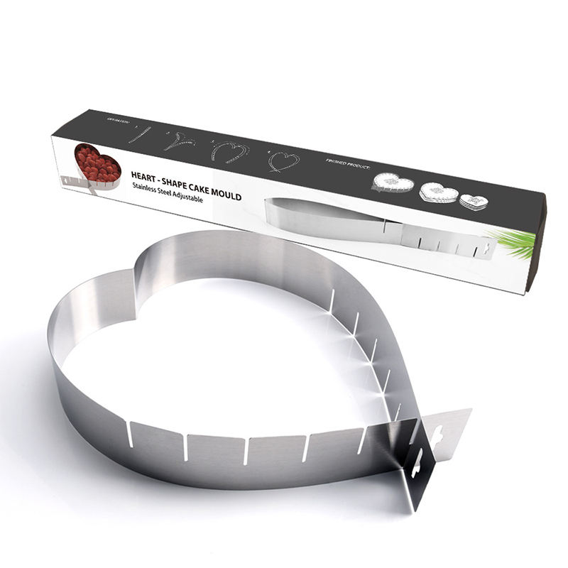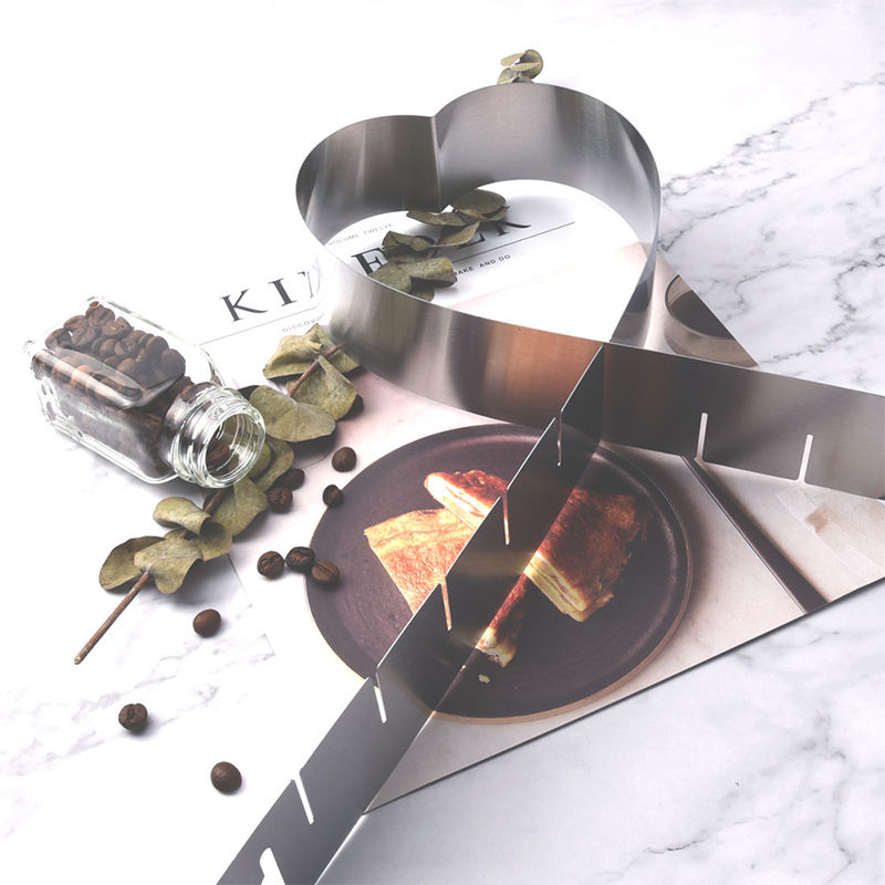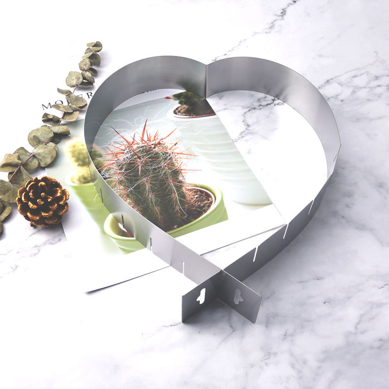 แหวนแม่พิมพ์เค้กมูสรูปหัวใจทำจากสแตนเลสแบบปรับได้สำหรับเค้กแบบทำมืออุปกรณ์สำหรับอบเค้ก