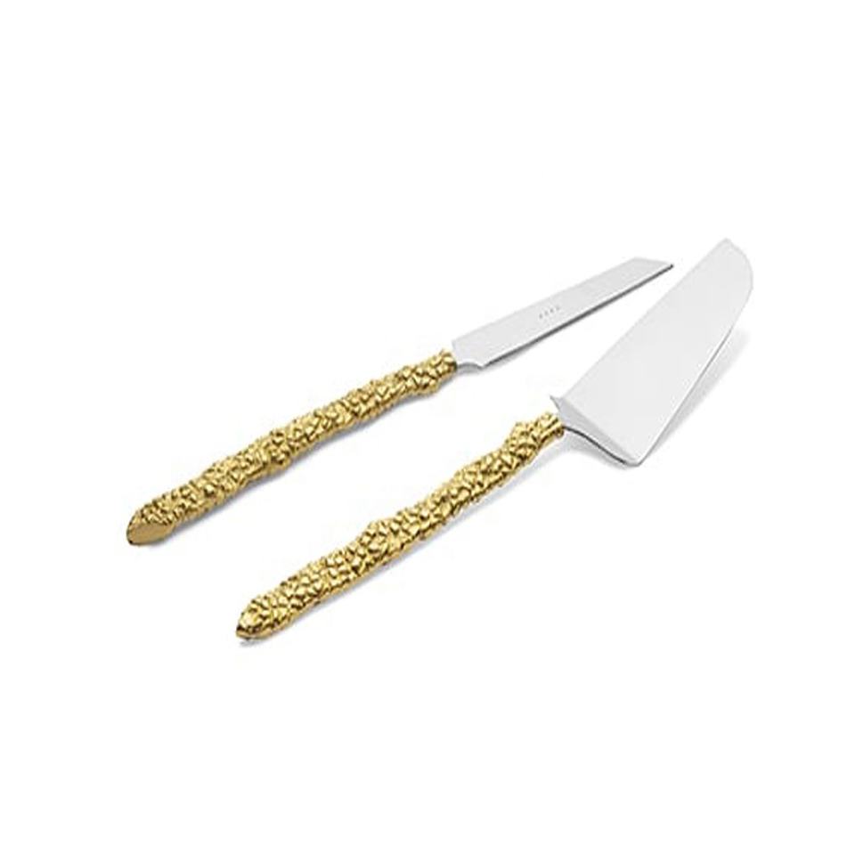 ชุดมีดและเซิร์ฟเวอร์เค้กสแตนเลสสีทองสดใส,มีด้ามจับแฮนด์เมดที่ไม่ซ้ำใครอุปกรณ์ทำเค้กราคาไม่แพง