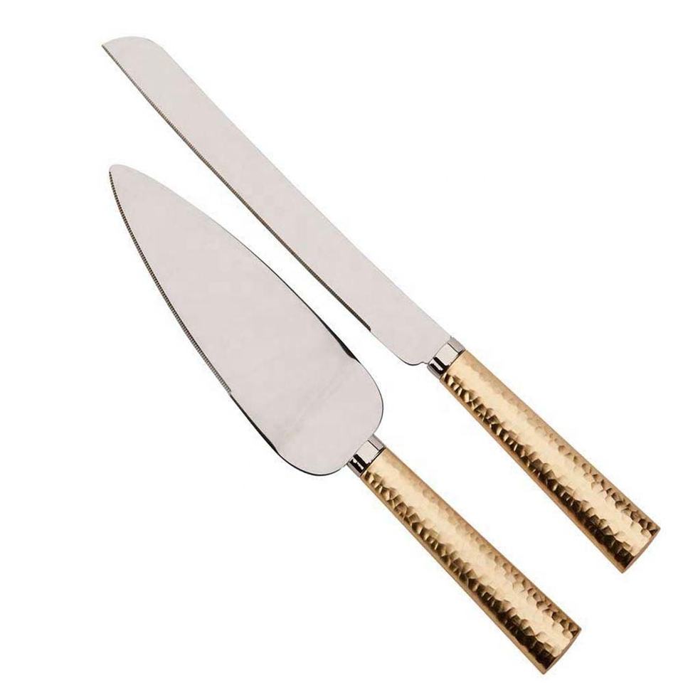 ชุดที่เสิร์ฟเค้กสแตนเลสพร้อมที่จับทรงไข่สีทองชุดมีดเค้กแต่งงานทำจากสเตนเลสสไตล์ใหม่