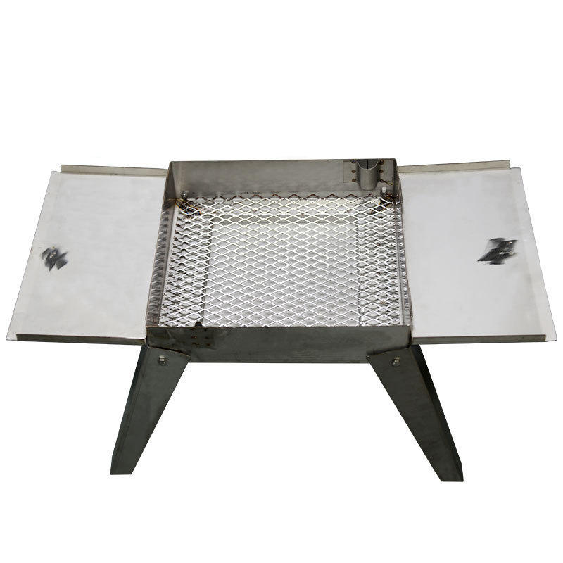 เตาปิ้งย่างสแตนเลสแบบพกพาสำหรับตั้งแคมป์ ใช้ถ่าน น้ำหนัก 8 กก. ดีไซน์พับได้ สีเงิน
