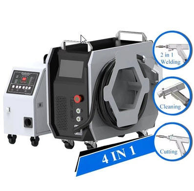 เครื่องเชื่อมอลูมิเนียมคาร์บอนสแตนเลสสตีลพร้อมปืนเชื่อมระบายความร้อนด้วยอากาศ4 In1แบบพกพาและเทคโนโลยีเลเซอร์แบบมือถือ