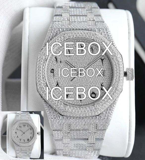 นาฬิกาข้อมือตัวเรือนสแตนเลส หน้าปัดกระจก ประดับเพชรโมอิสซาไนต์เต็มหน้าปัด กันน้ำได้ 10 บาร์ สายแบบกำไล