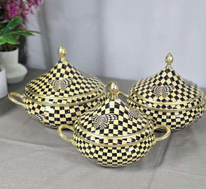 หม้อสแตนเลสพร้อมฝาปิดสำหรับเสิร์ฟอาหารร้อนในงานเลี้ยงอาหารค่ำครอบครัวและงานจัดเลี้ยง