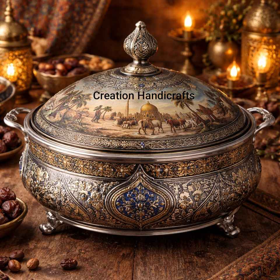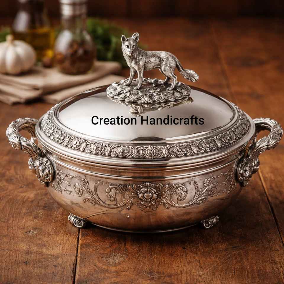 หม้อตุ๋นสแตนเลสเคลือบเงิน ชามเสิร์ฟตกแต่งพร้อมฝาปิด ของขวัญงานแต่งงาน ชามเสิร์ฟแบบราชวงศ์