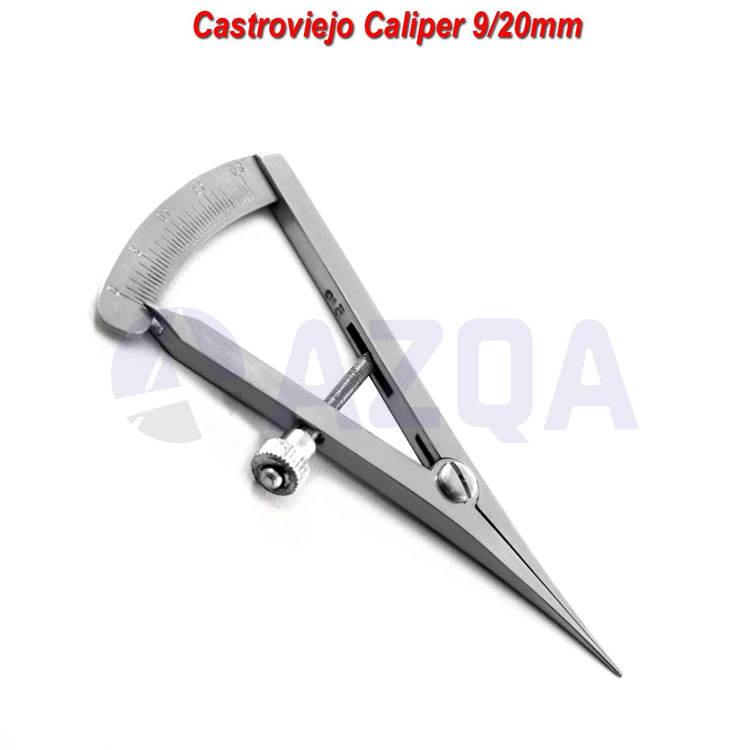 คาลิปเปอร์สแตนเลสสตีลแบบคาสโตรวีเอโฮ เครื่องมือผ่าตัดจักษุวิทยาที่มีความแม่นยำสูง สำหรับวัดขนาดและใช้ในงานศัลยกรรมกระดูก